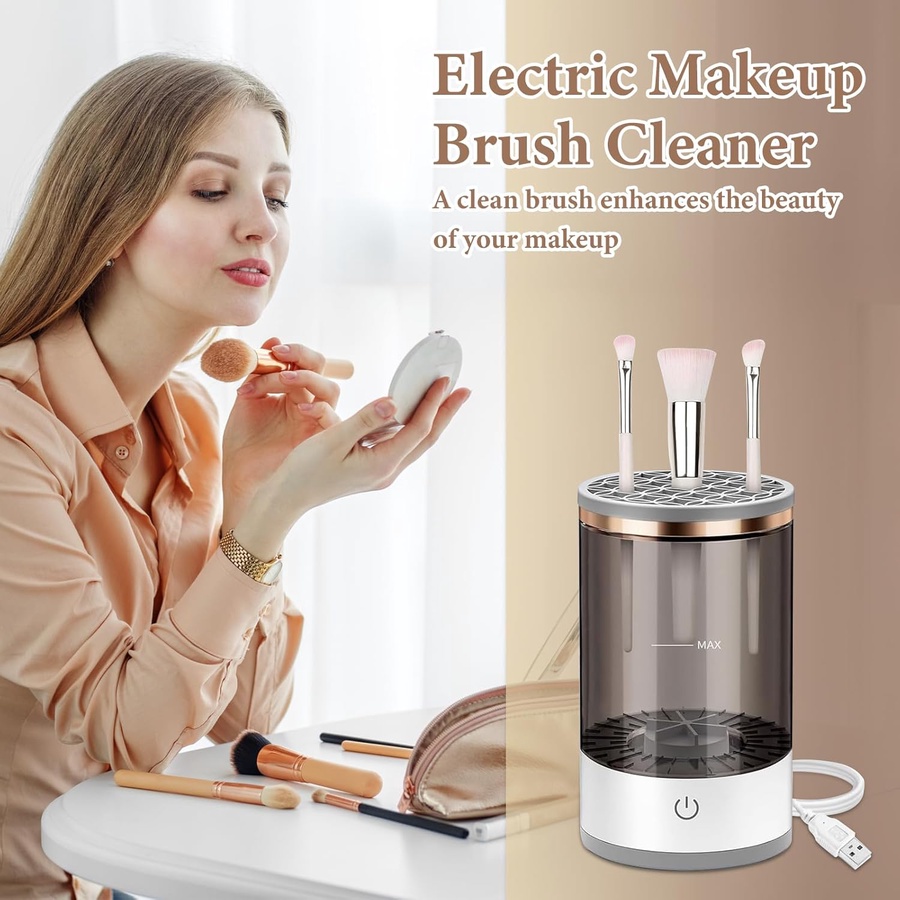 جهاز غسيل فرشة المكياج بينضّف ويجفف الفرش بسرعة وكفاءة، يحافظ على نعومة الشعيرات، سهل الاستخدام، مثالي لنظافة صحية وإطلالة مكياج مثالية.