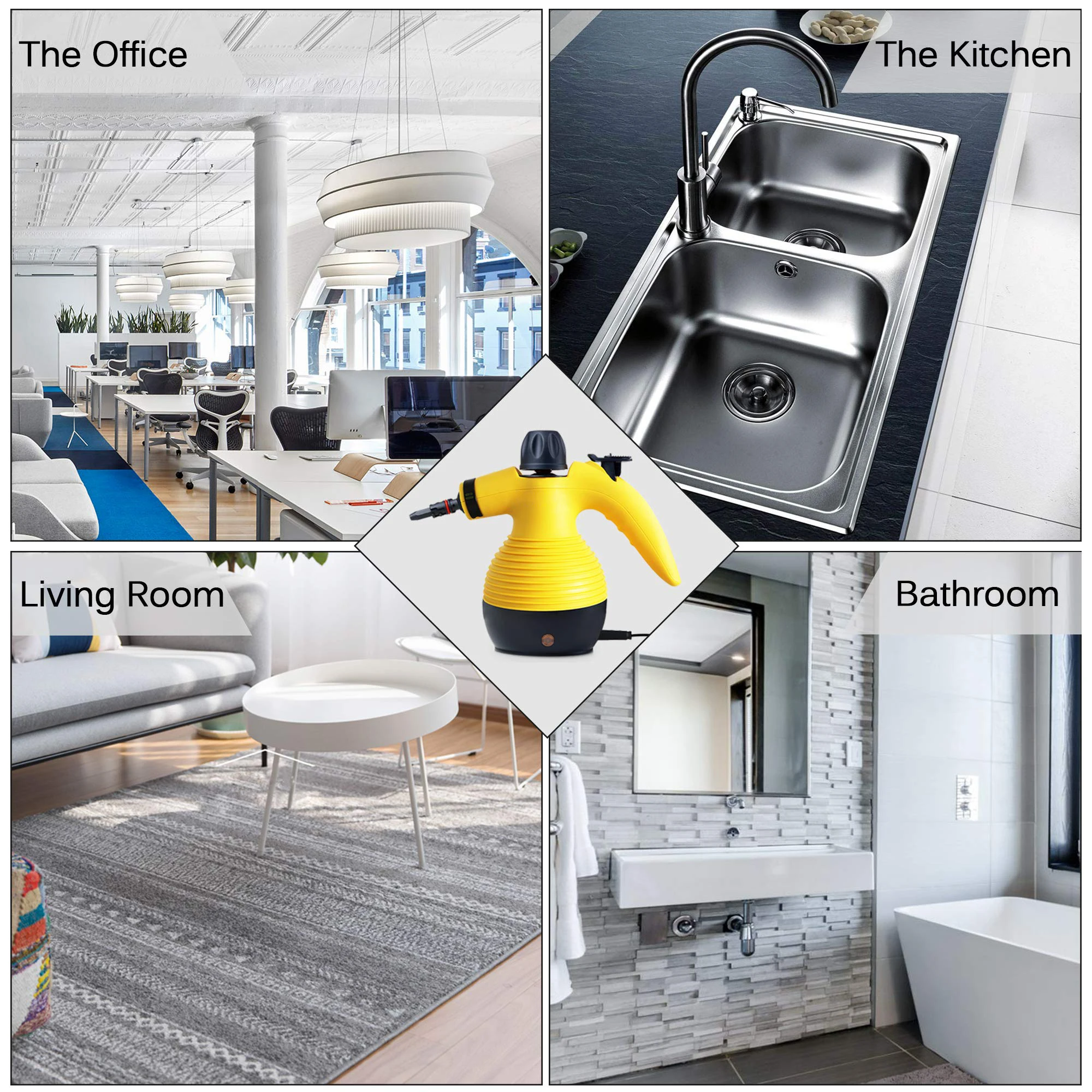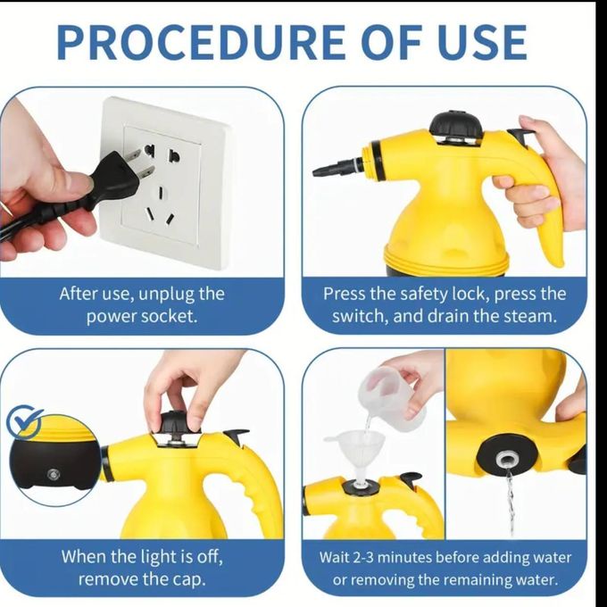 جهاز البخار المحمول باليد بقدرة 1000 واط هو الحل الأمثل لتنظيف أي سطح بسرعة وكفاءة. بينظف الدهون والأوساخ العنيدة بدون مجهود وبدون استخدام أي مواد كيماوية، مما يجعله آمن لكل أفراد الأسرة. تصميمه خفيف وسهل الحمل، ومجهز بعدة فوهات وفرش لتسهيل التنظيف في المطبخ، الحمام، السيارة، الشبابيك، الستائر، والسيراميك.