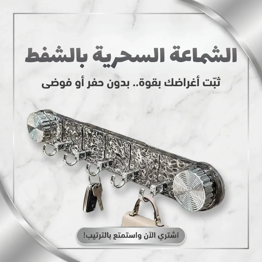 الشماعة السحرية بالشفط تثبّت الملابس والأغراض بسهولة بدون مسامير أو مسام، تصميم قوي وآمن، مثالية لتنظيم المساحات في المنزل أو الحمام بطريقة عملية ومرتبة.