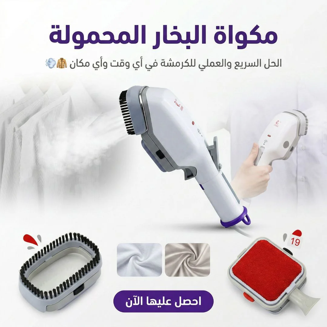 مكواة البخار المحمولة تنعم وتجفف الملابس بسرعة وكفاءة، تصميم خفيف وسهل الاستخدام، مثالية للسفر أو الاستخدام المنزلي لضمان ملابس مرتبة وأنيقة دائمًا.