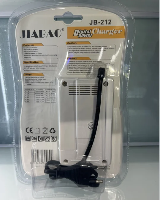 شاحن بطاريات جياباو JB-212 عملي وسهل الاستخدام، بيشحن بطاريات AA وAAA القابلة للشحن، وبيجي معاه 4 بطاريات . مناسب لأي أجهزة بتشتغل بالبطاريات زي الريموت، الألعاب، الكاميرات وغيرها. المواصفات: النوع: شاحن بطاريات الموديل: JB-212 الاستخدام: لبطاريات AA وAAA (نيكل كادميوم / نيكل ميتال) عدد منافذ الشحن: 4 أماكن لمبات إضاءة لمتابعة حالة الشحن بيشتغل على الكهرباء مباشرة المميزات: خفيف وسهل الحمل فيه نظام حماية من زيادة الشحن توفير في الفلوس بدل ما تشتري بطاريات كل شوية ينفع للأجهزة الإلكترونية المختلفة محتوى العبوة: 1 شاحن بطاريات 4 بطاريات قابلة لإعادة الشحن