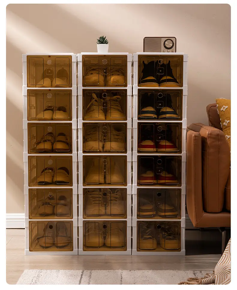 لو بتدور على حل عملي ومرتب لتخزين الأحذية، البوكس ده هيبقى اختيار ممتاز ليك! بيتكون من طبقات متعددة (3، 5، أو 6 طبقات حسب اختيارك)، وبيتفتح ويتقفل بسهولة، كمان مقاوم للتراب وبيحافظ على شكل الأحذية ونضافتها. مميزاته: متوفر بعدة طبقات على حسب احتياجك. قابل للطي عشان يوفرلك مساحة لما مش محتاجه. تصميم شيك ينفع في أوضة النوم، الحمام، الريسيبشن، أو حتى المكتب. خامة بلاستيك قوية وسهلة التنضيف. بيحافظ على الأحذية من التراب والرطوبة. سهل التجميع والتركيب بدون أدوات. هيخلي بيتك شكله مرتب ومنظم، ويريحك من الكركبة بتاعت الأحذية في كل مكان!